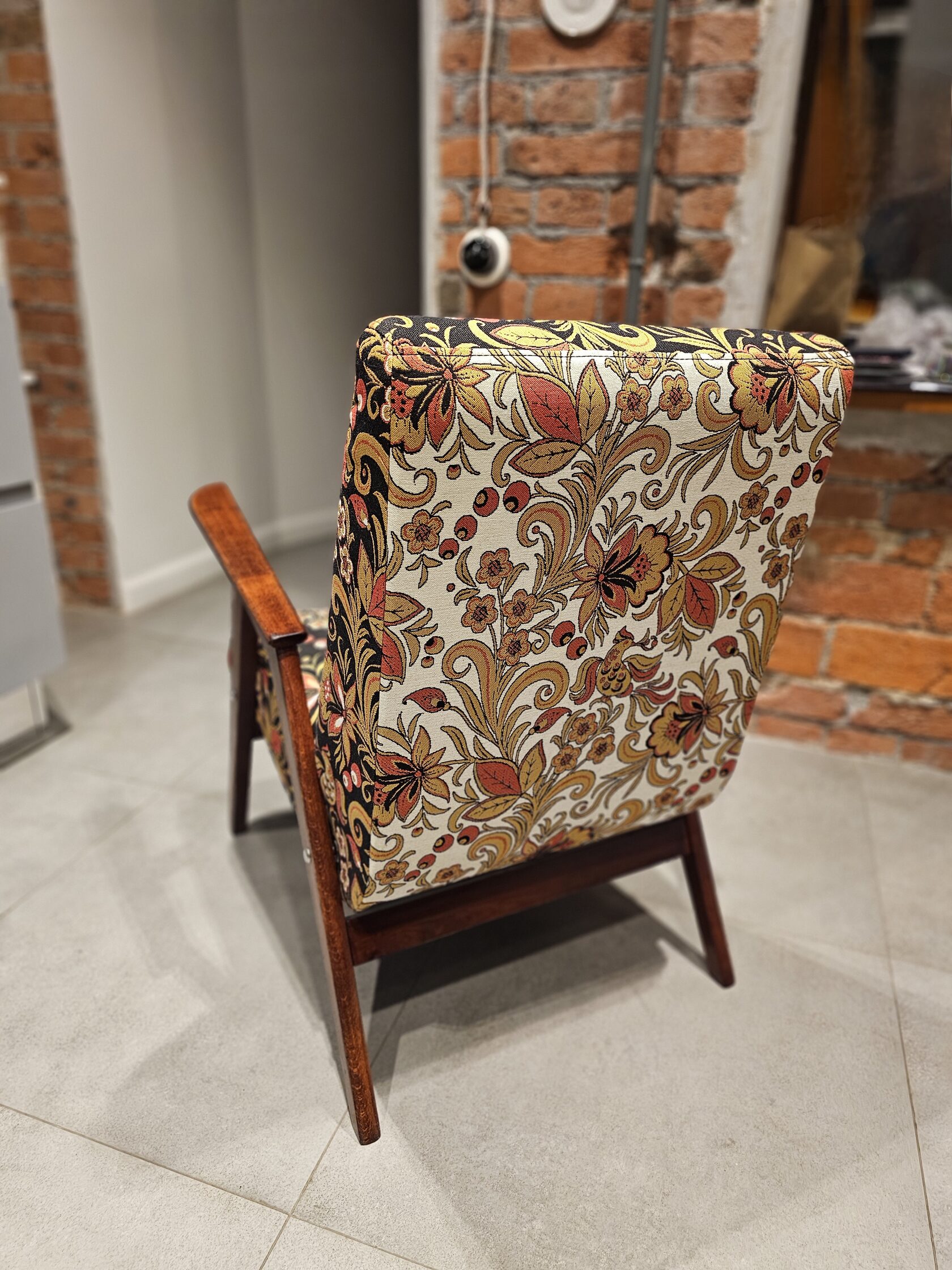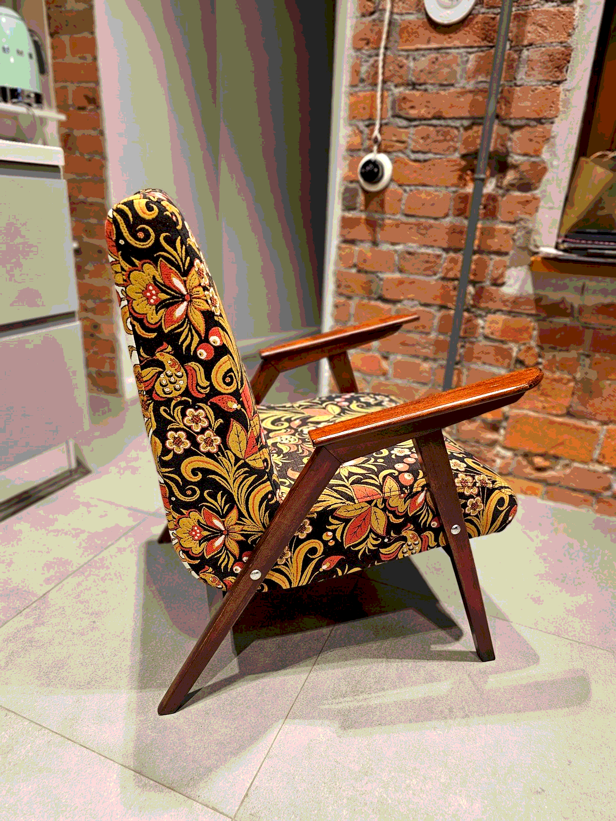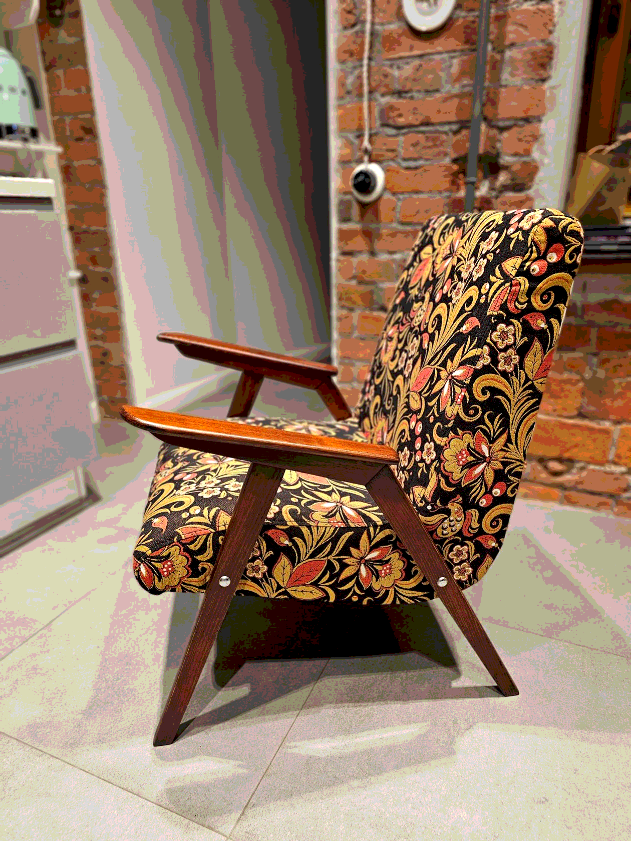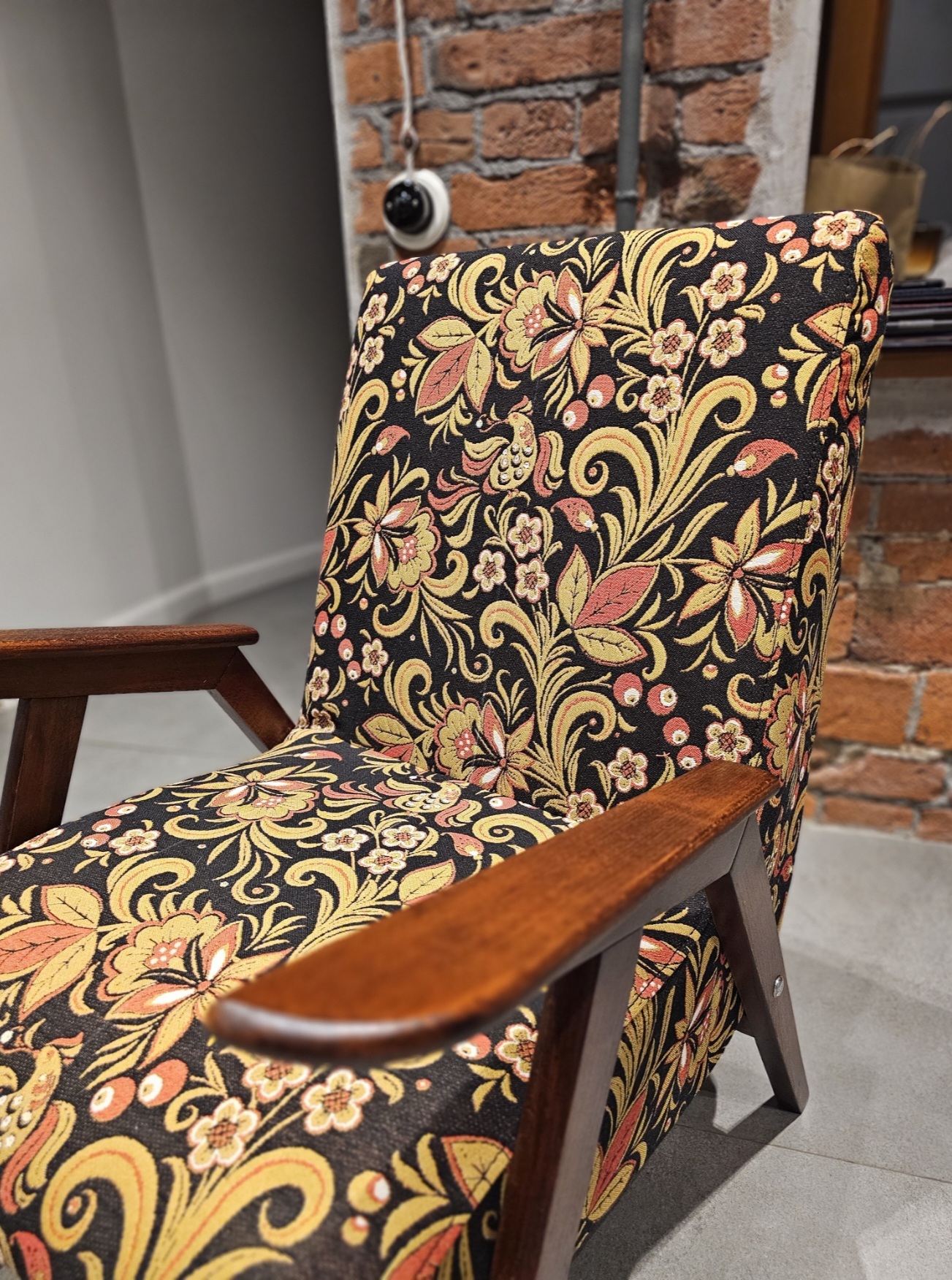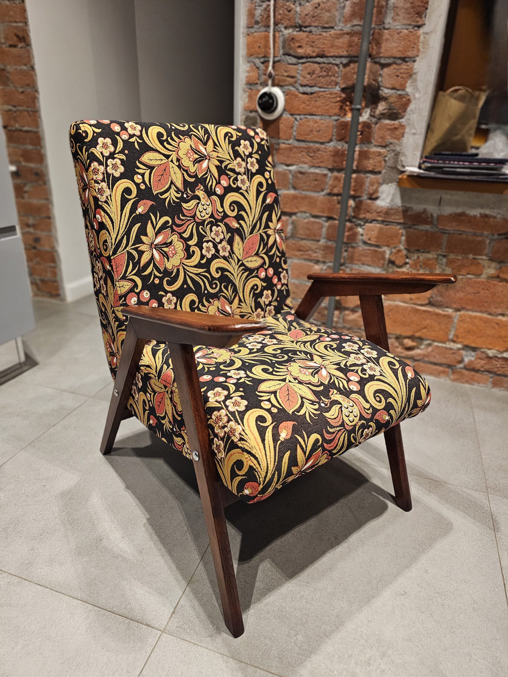 Винтажное кресло, 60-е В стиле Пoльского кресла Bunny - дизайнера Jоzеf Сhierоwski. Полная реставрация. Ткань, гобелен - рисунок хохлома, в сочетании двух видов, черного и белого. В наличии 2 шт. , цена указана за 1 кресло