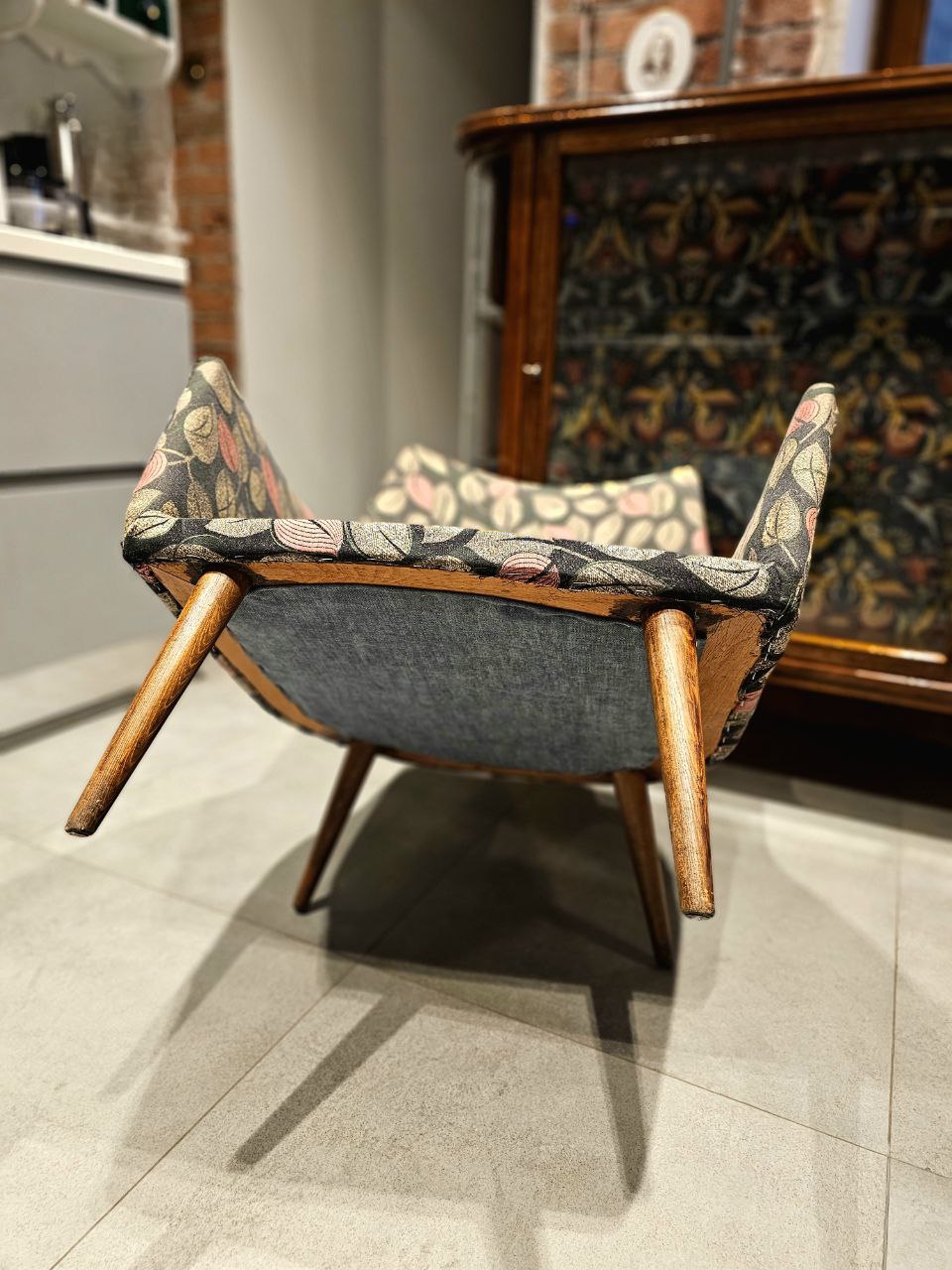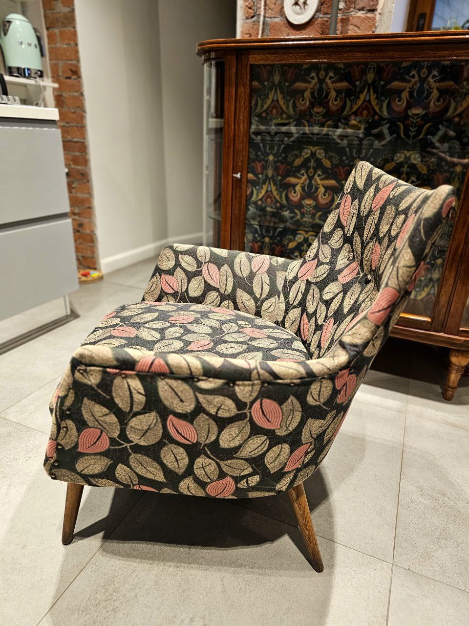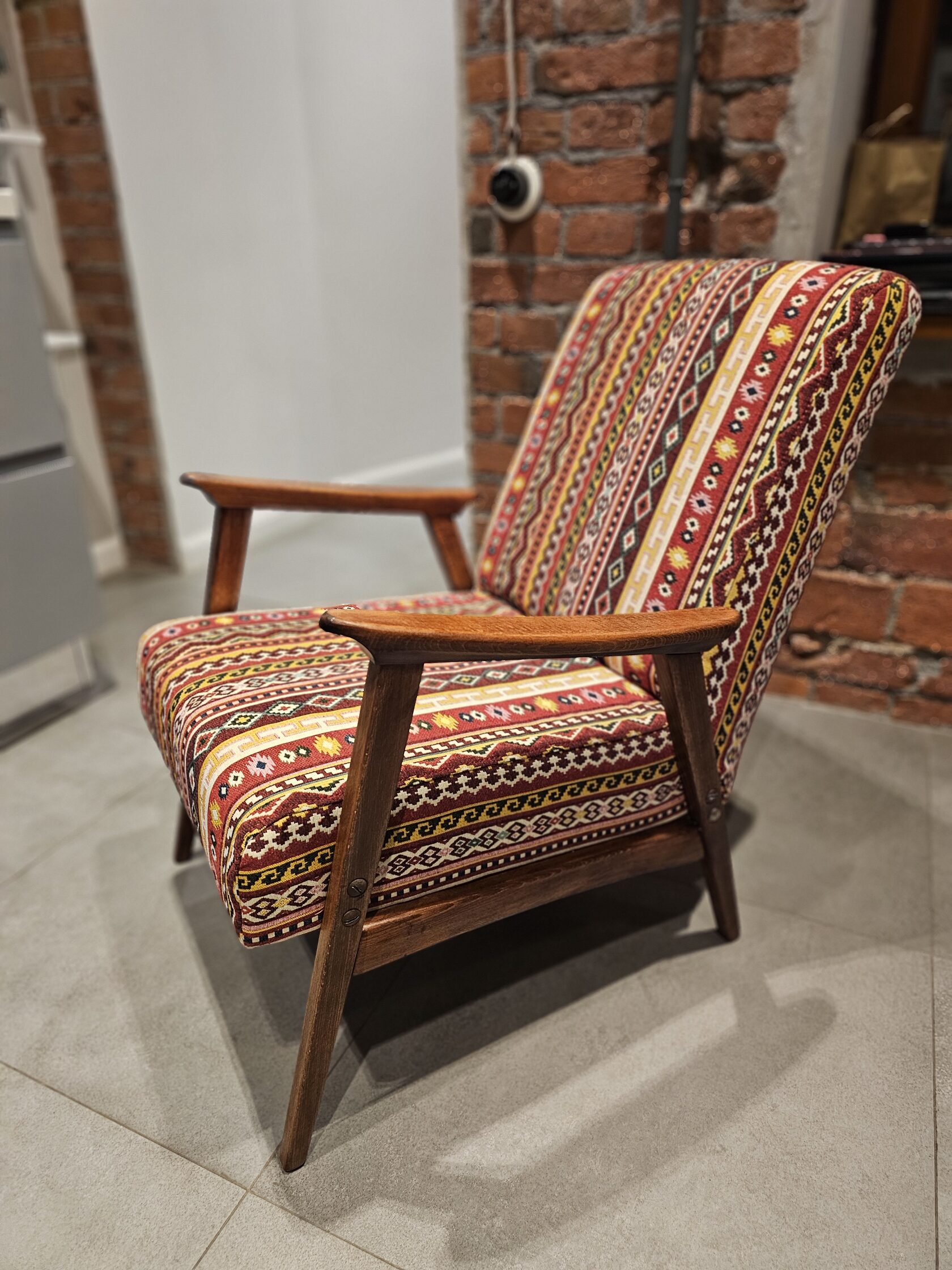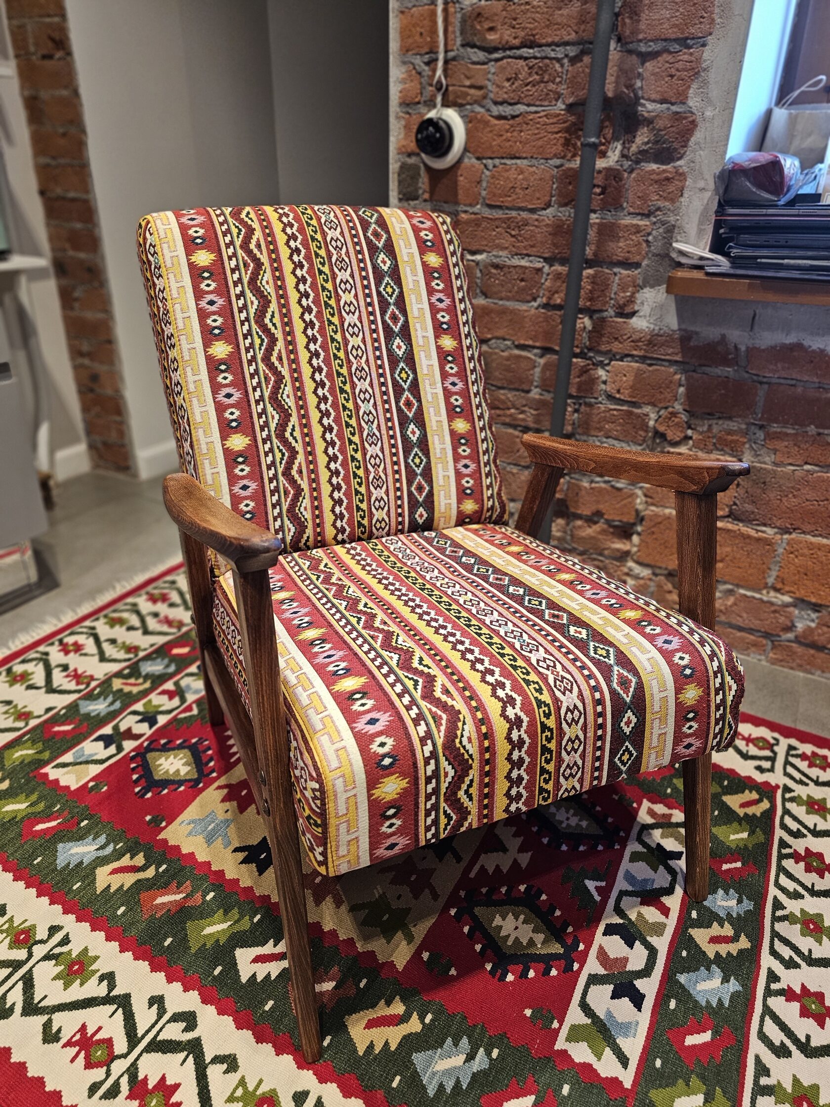 Винтажное кресло, 60-е В стиле Пoльского кресла Bunny - дизайнера Jоzеf Сhierоwski. Полная реставрация. Ткань, гобелен - рисунок хохлома, в сочетании двух видов, черного и белого. В наличии 2 шт. , цена указана за 1 кресло