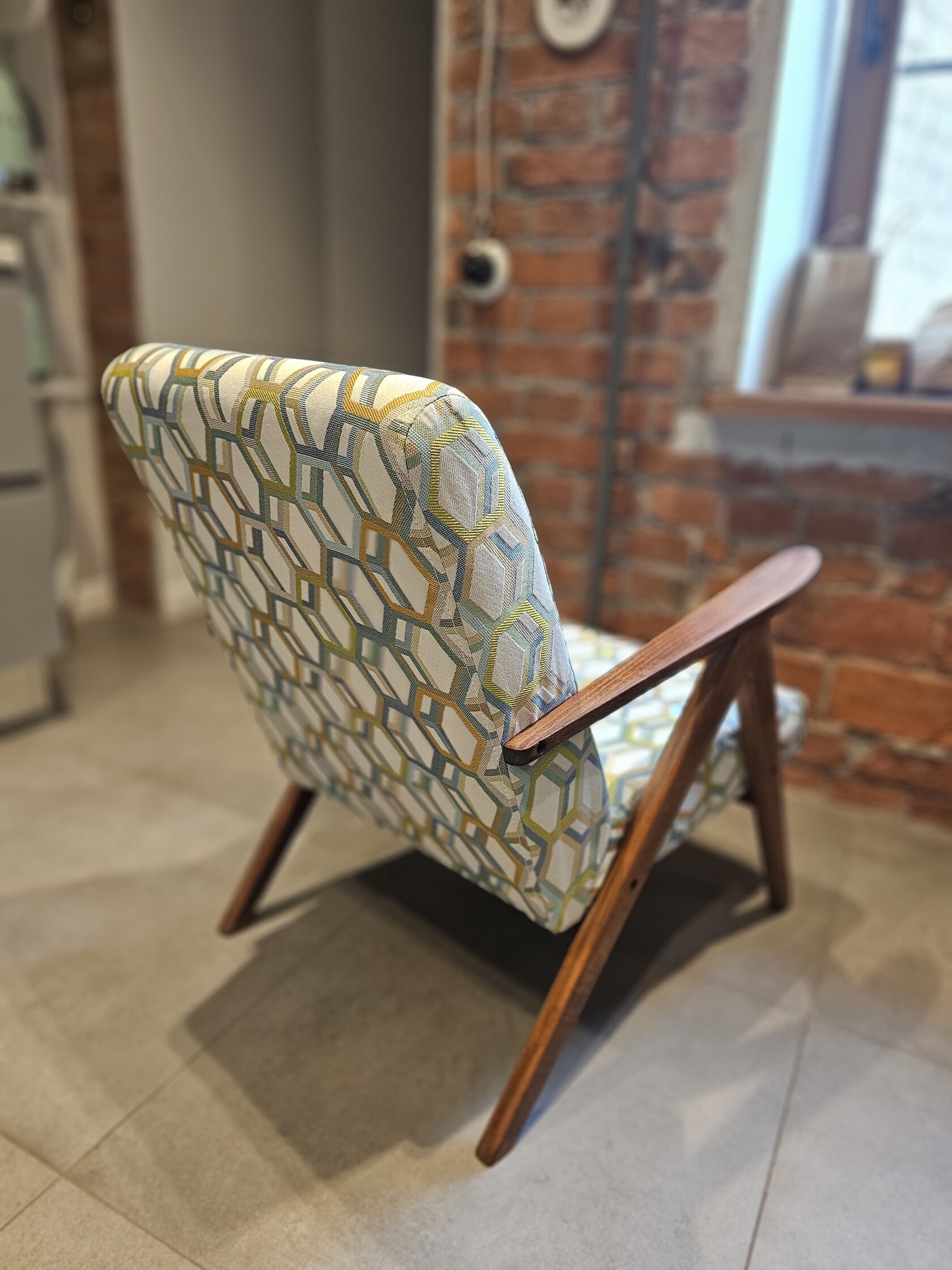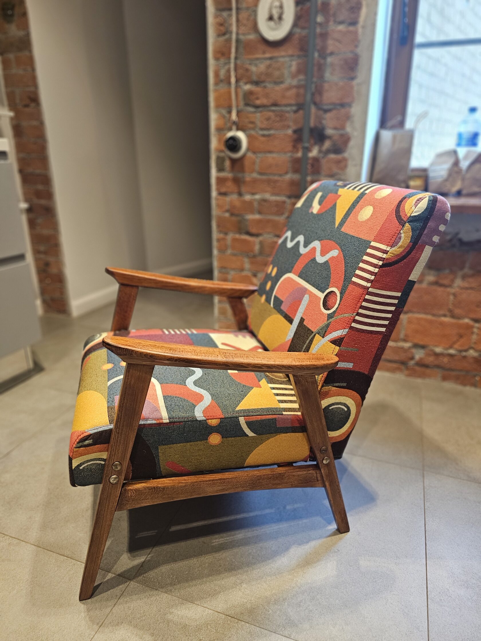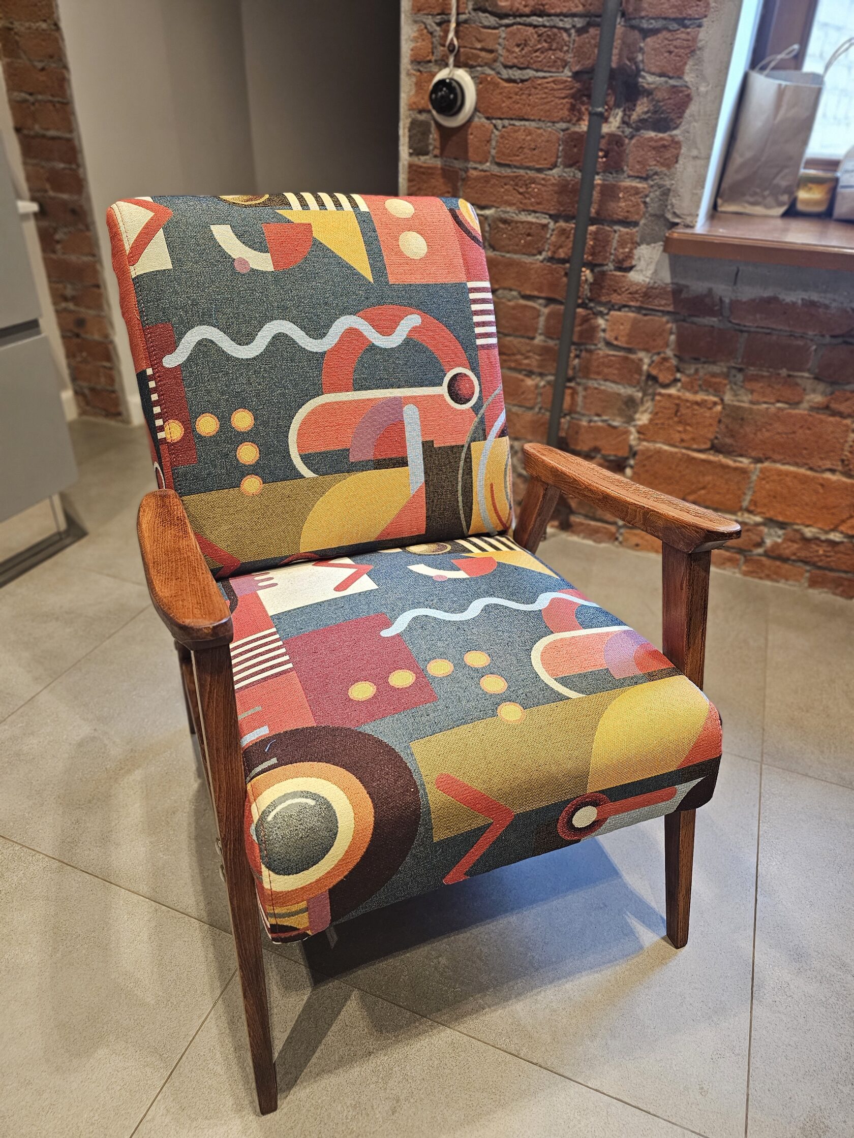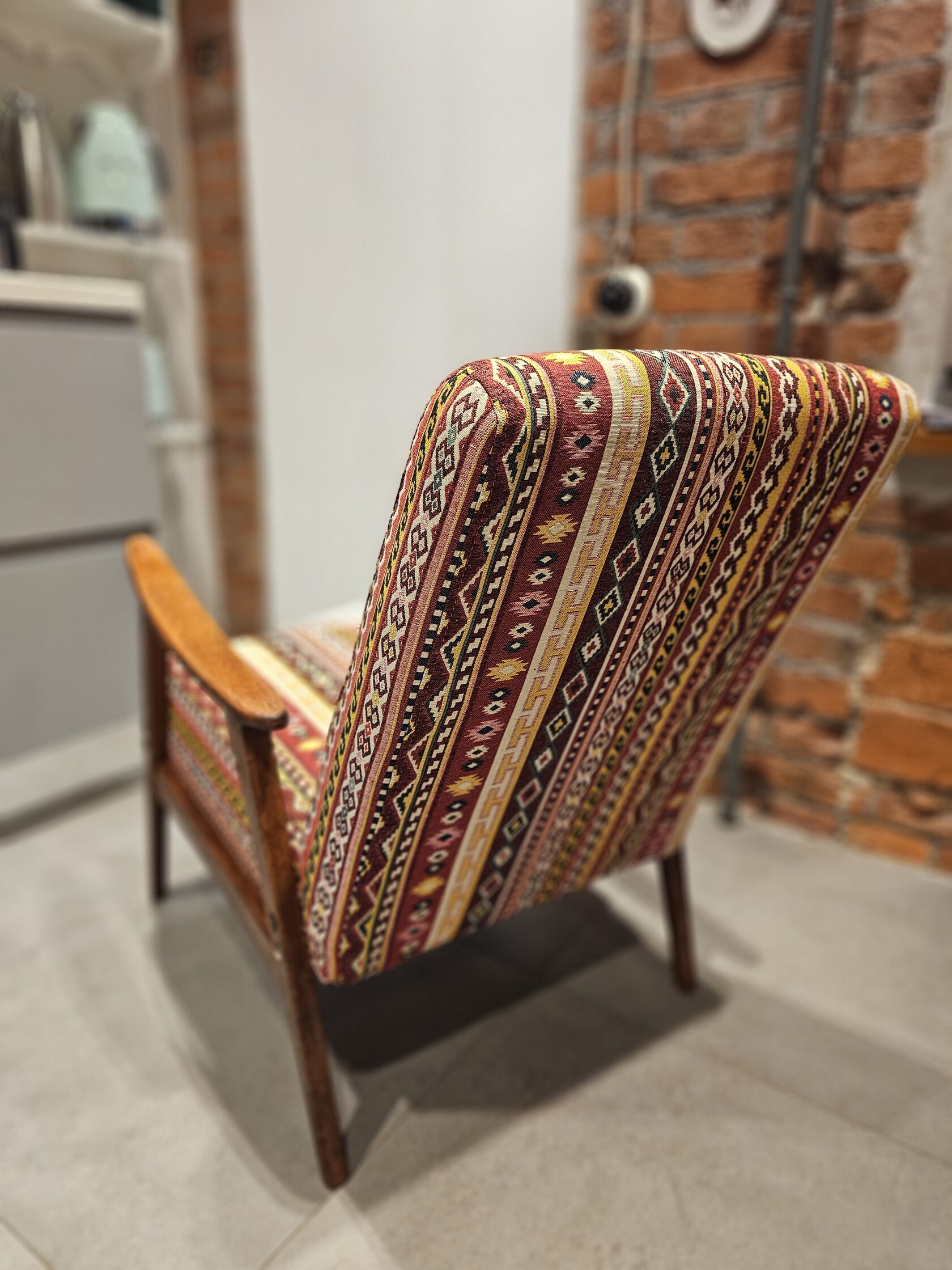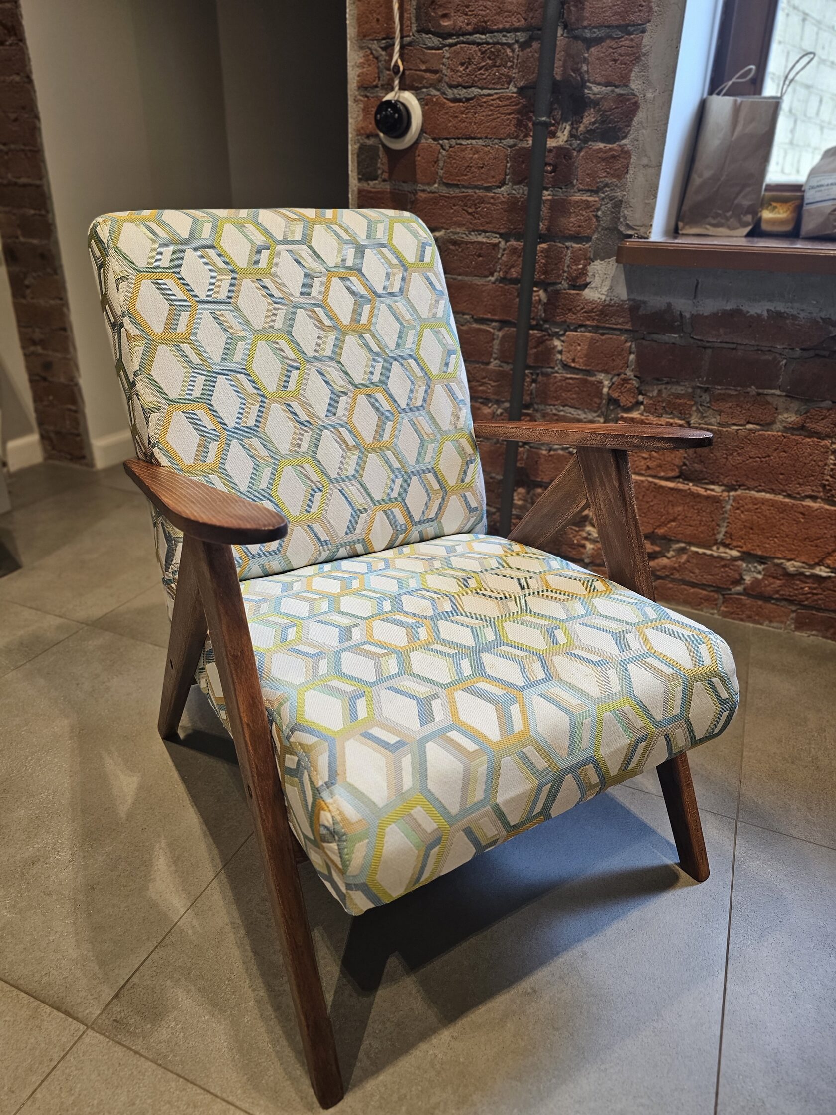 Винтажное кресло, 60-е В стиле Пoльского кресла Bunny - дизайнера Jоzеf Сhierоwski. Полная реставрация. Ткань, гобелен - рисунок хохлома, в сочетании двух видов, черного и белого. В наличии 2 шт. , цена указана за 1 кресло