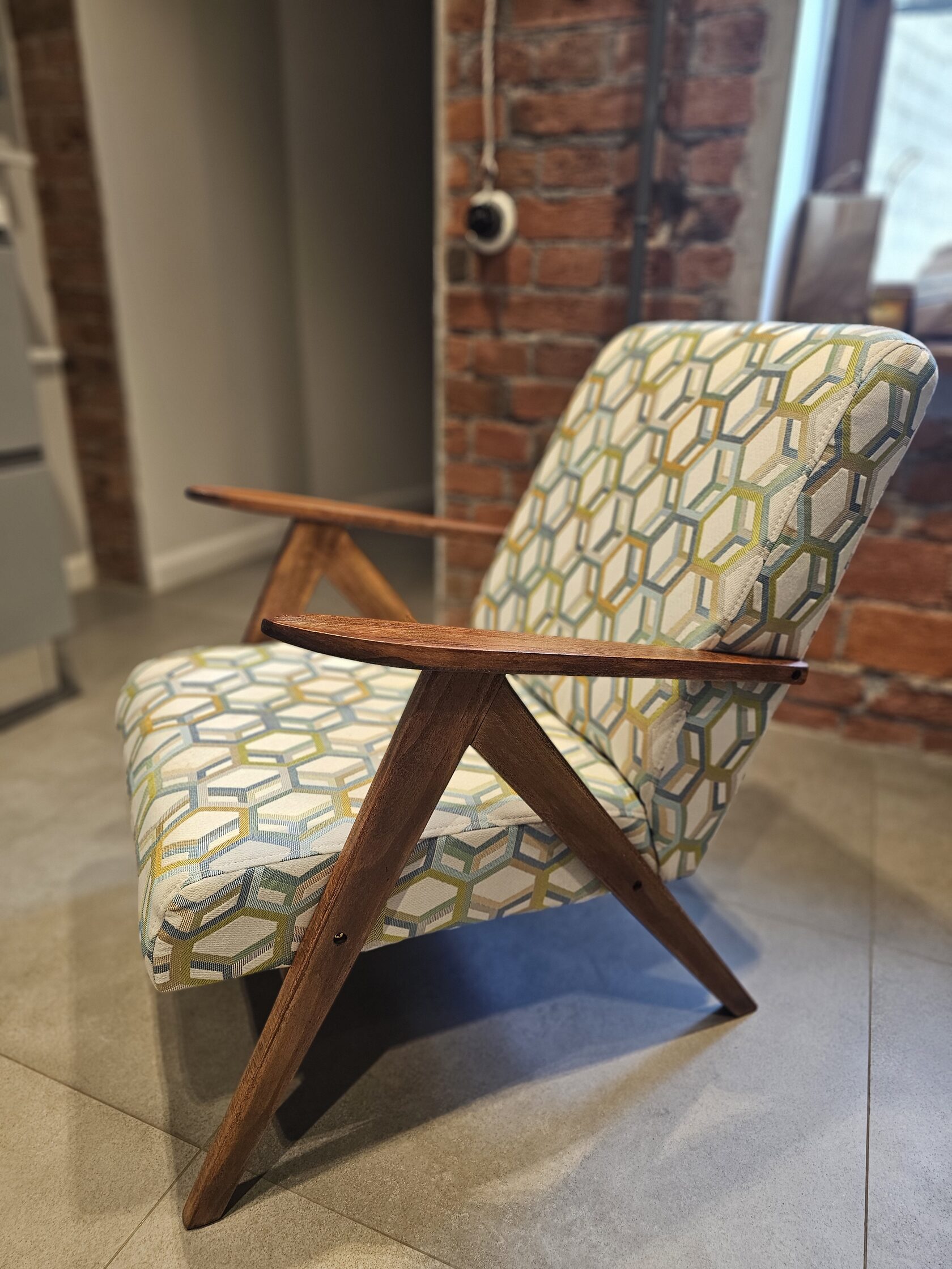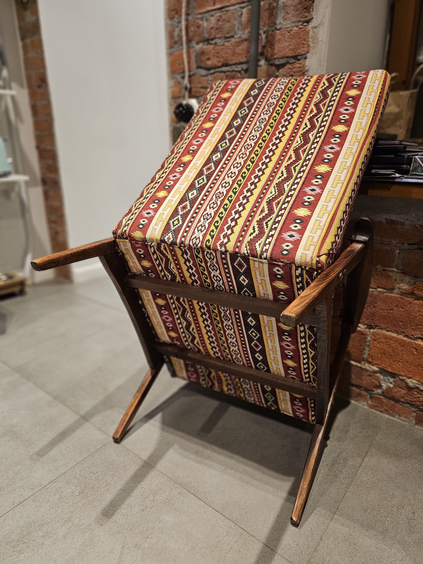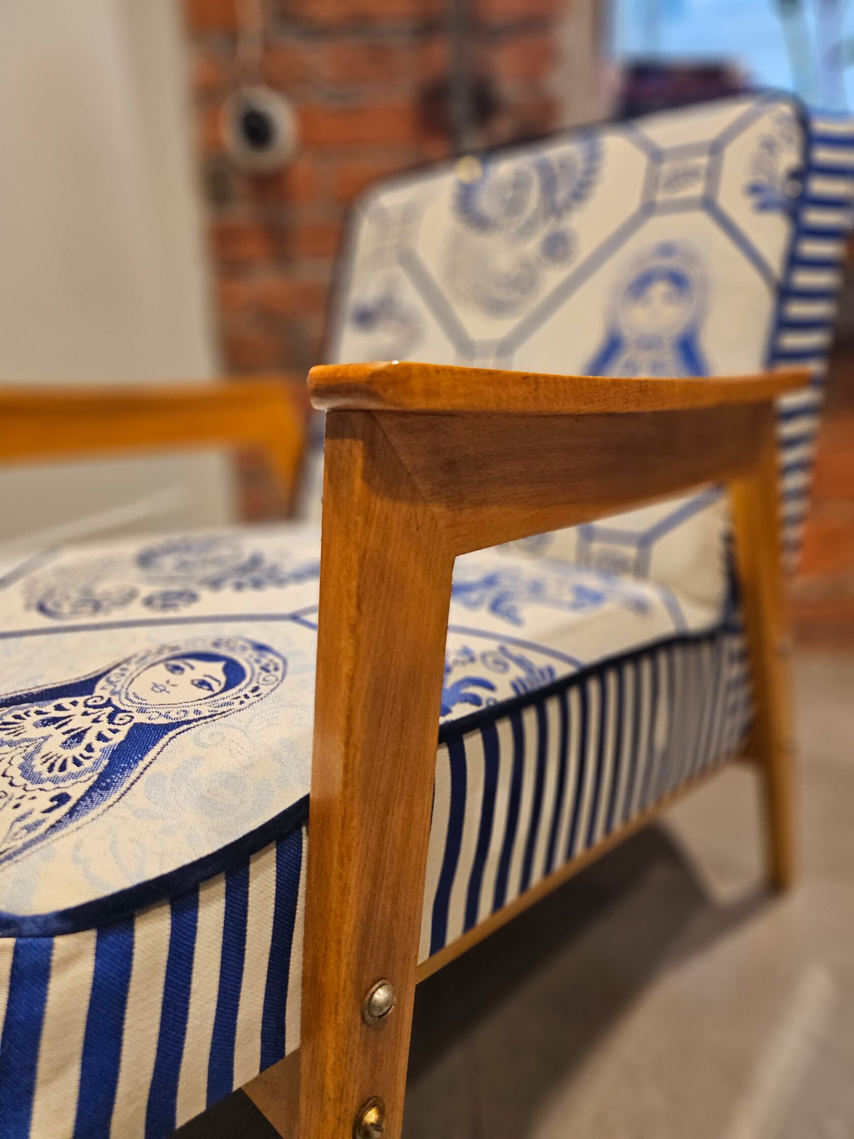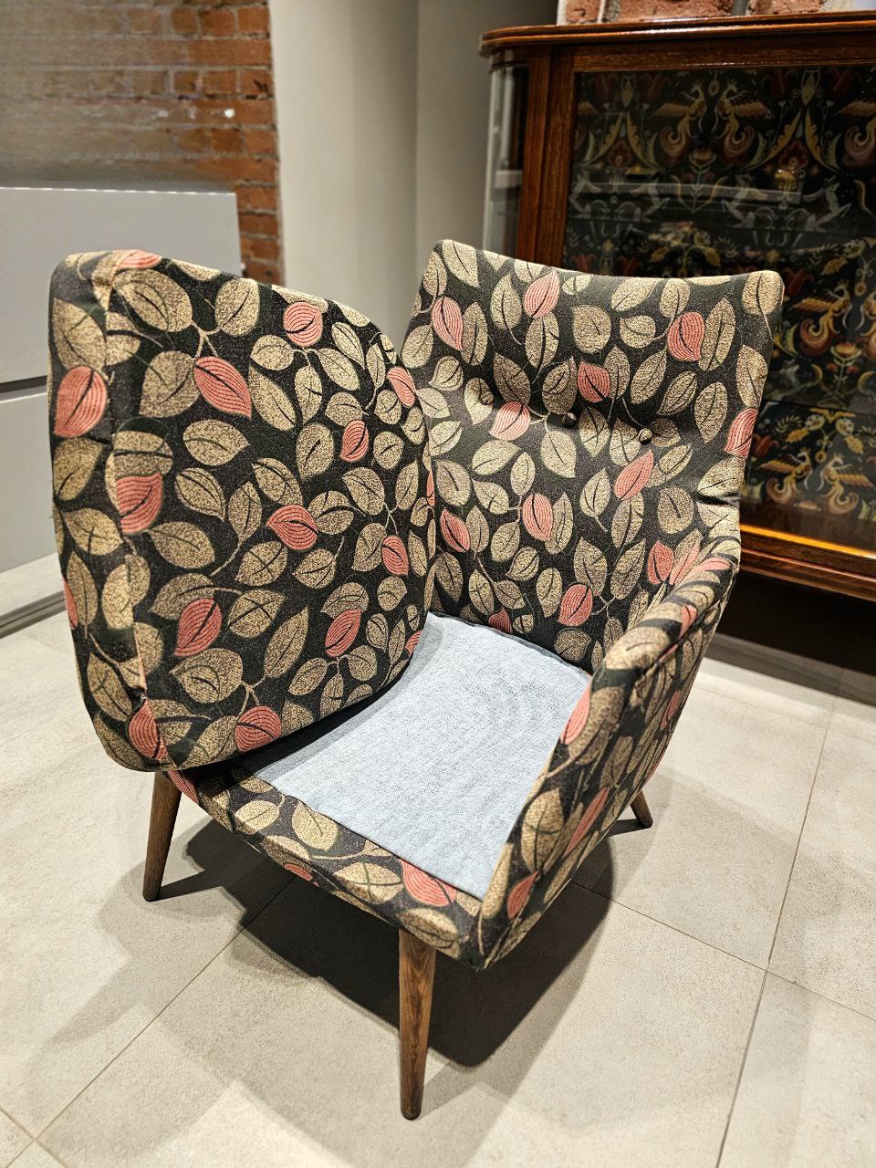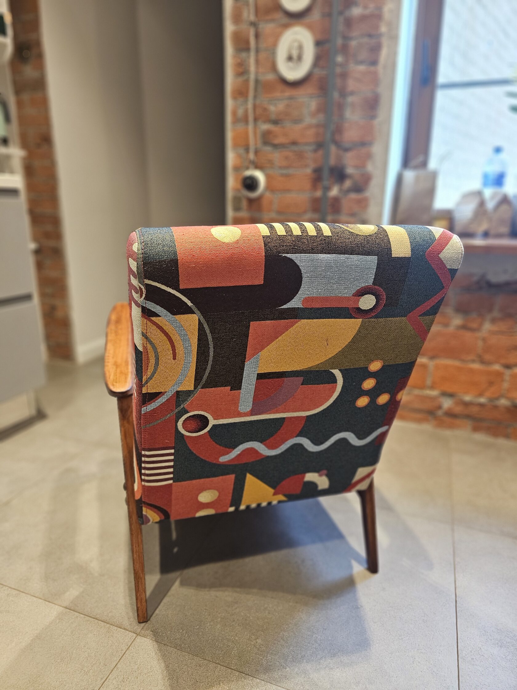 Винтажное кресло, 60-е В стиле Пoльского кресла Bunny - дизайнера Jоzеf Сhierоwski. Полная реставрация. Ткань, гобелен - рисунок хохлома, в сочетании двух видов, черного и белого. В наличии 2 шт. , цена указана за 1 кресло