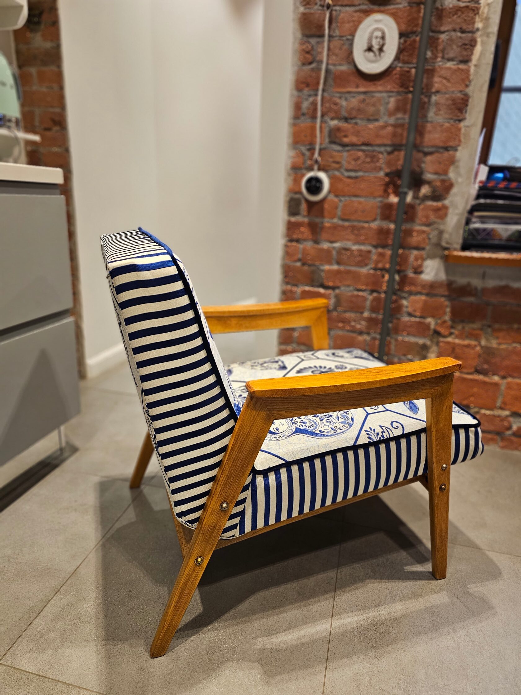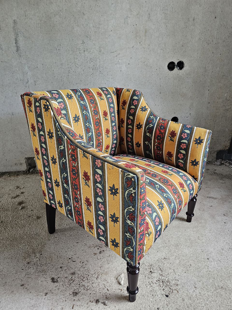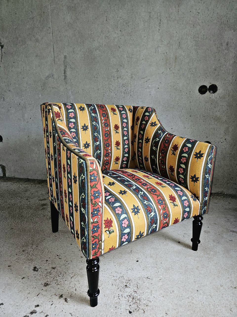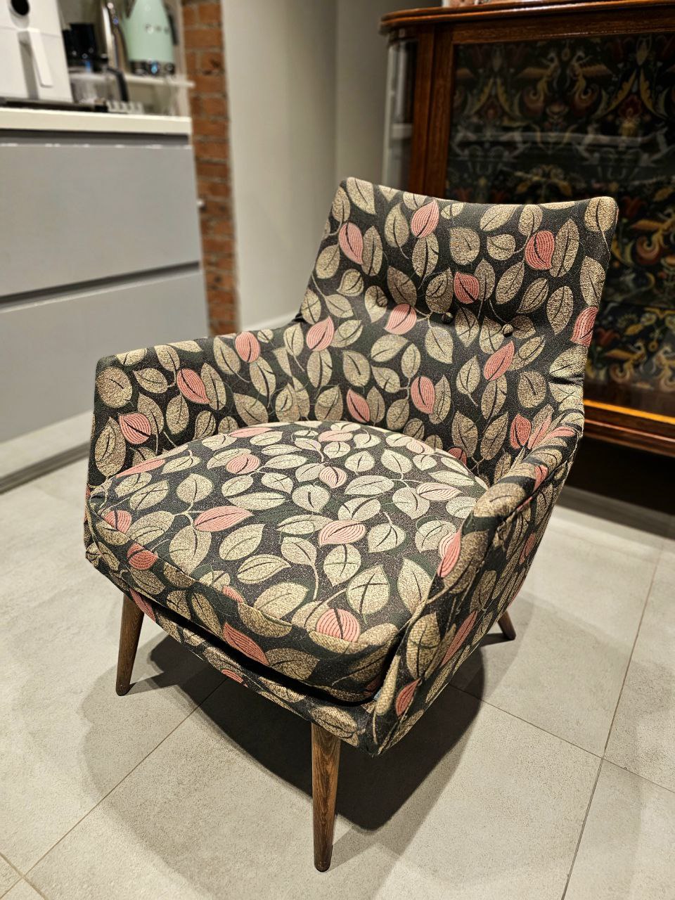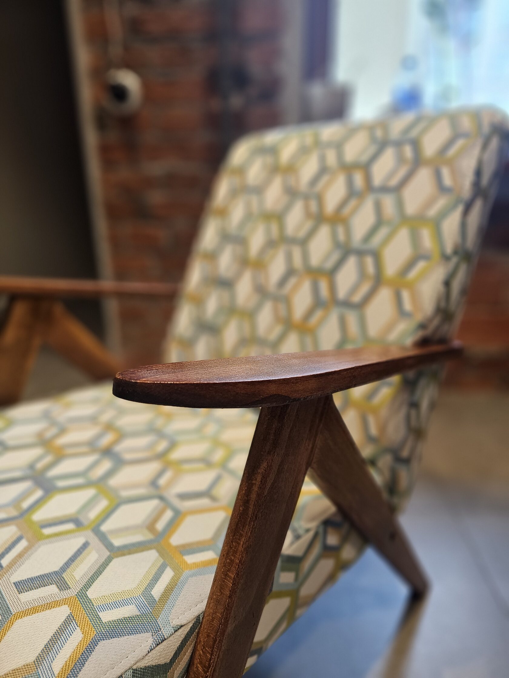 Винтажное кресло, 60-е В стиле Пoльского кресла Bunny - дизайнера Jоzеf Сhierоwski. Полная реставрация. Ткань, гобелен - рисунок хохлома, в сочетании двух видов, черного и белого. В наличии 2 шт. , цена указана за 1 кресло