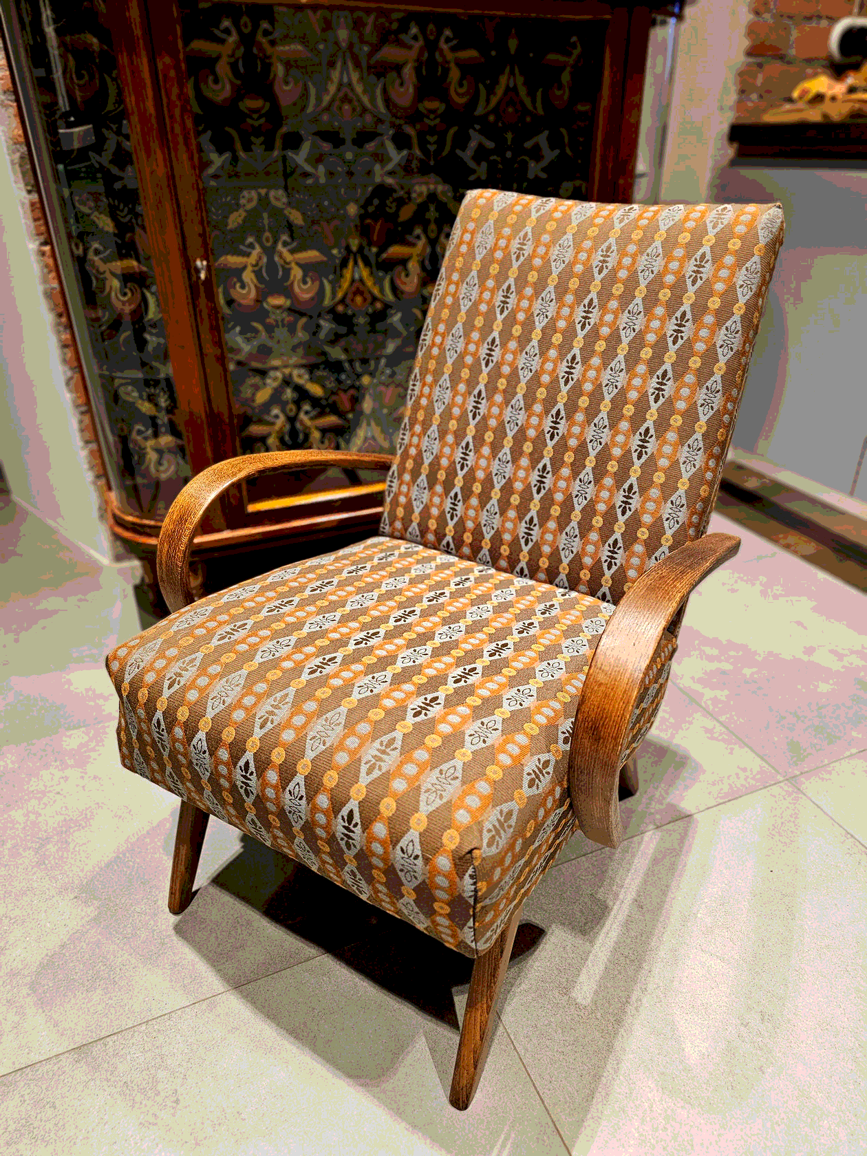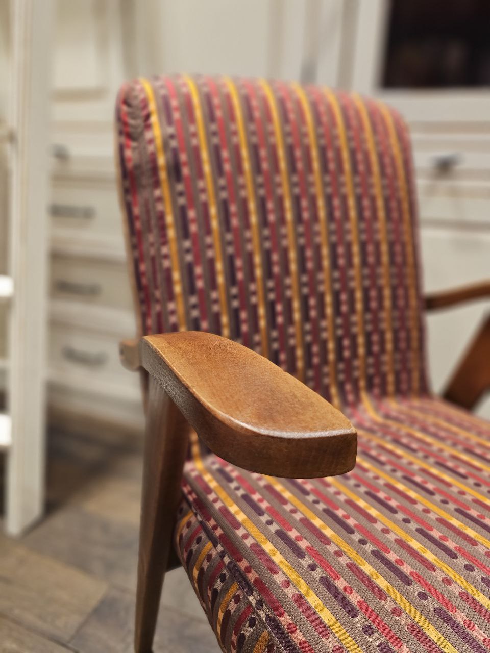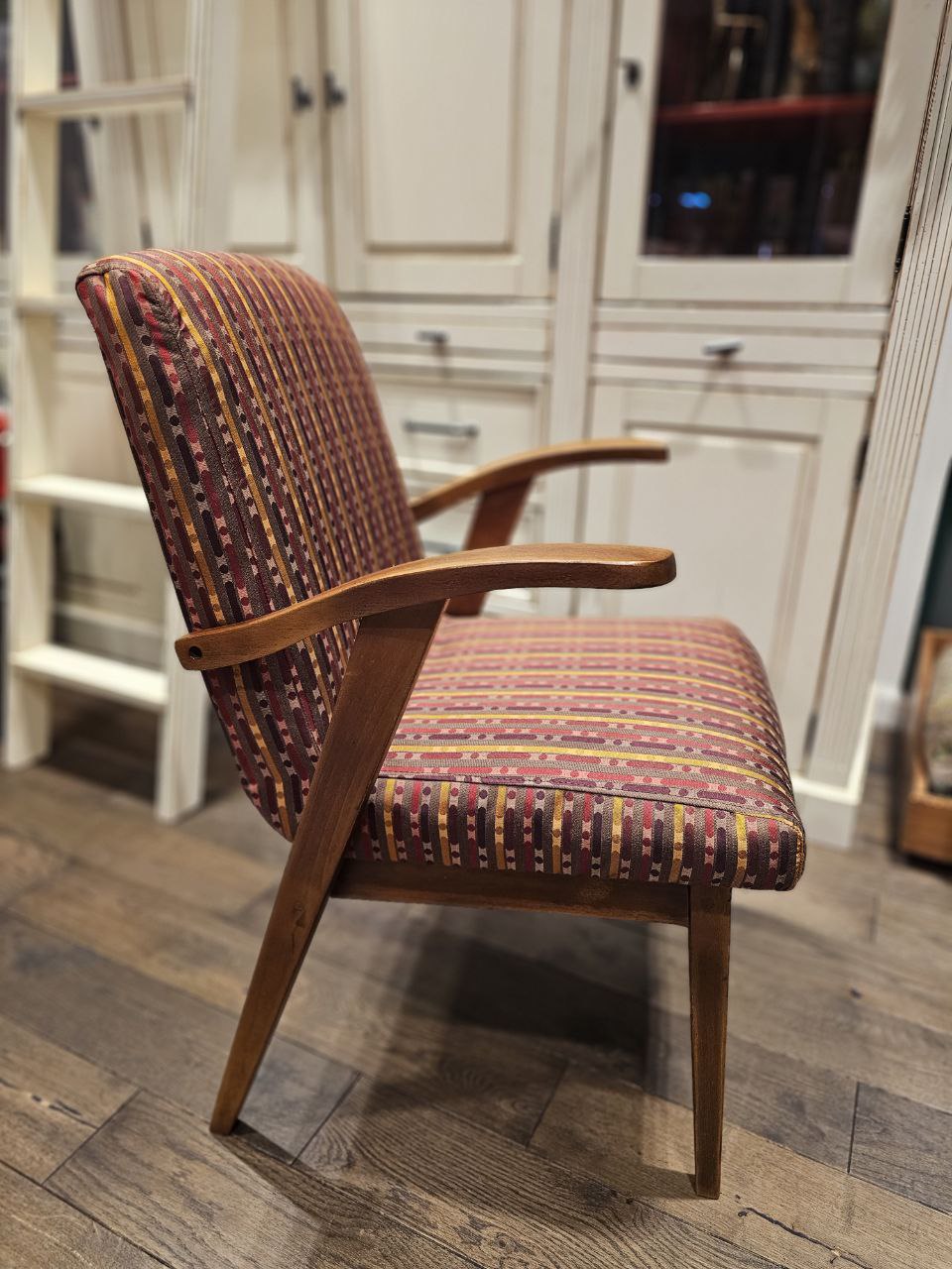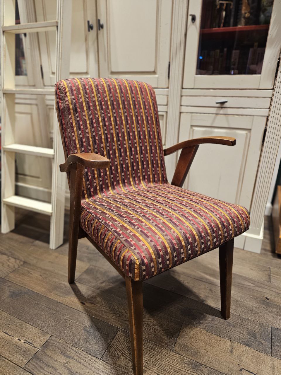 Винтажное рабочее кресло, 60-е. Польша, дизайнер Мечислав Пухала (Mieczysław Puchała) Кресло после бережной реставрации, ткань - США. 61 см глубина, 56 см ширина, 82 см высота, 47 см высота посадки. 39-46 см сиденье. 65 см высота подлокотников, 46 см высота спинки.
