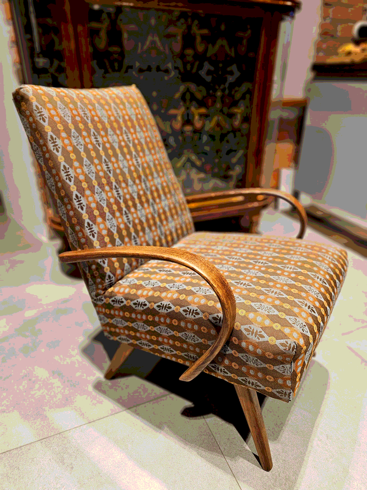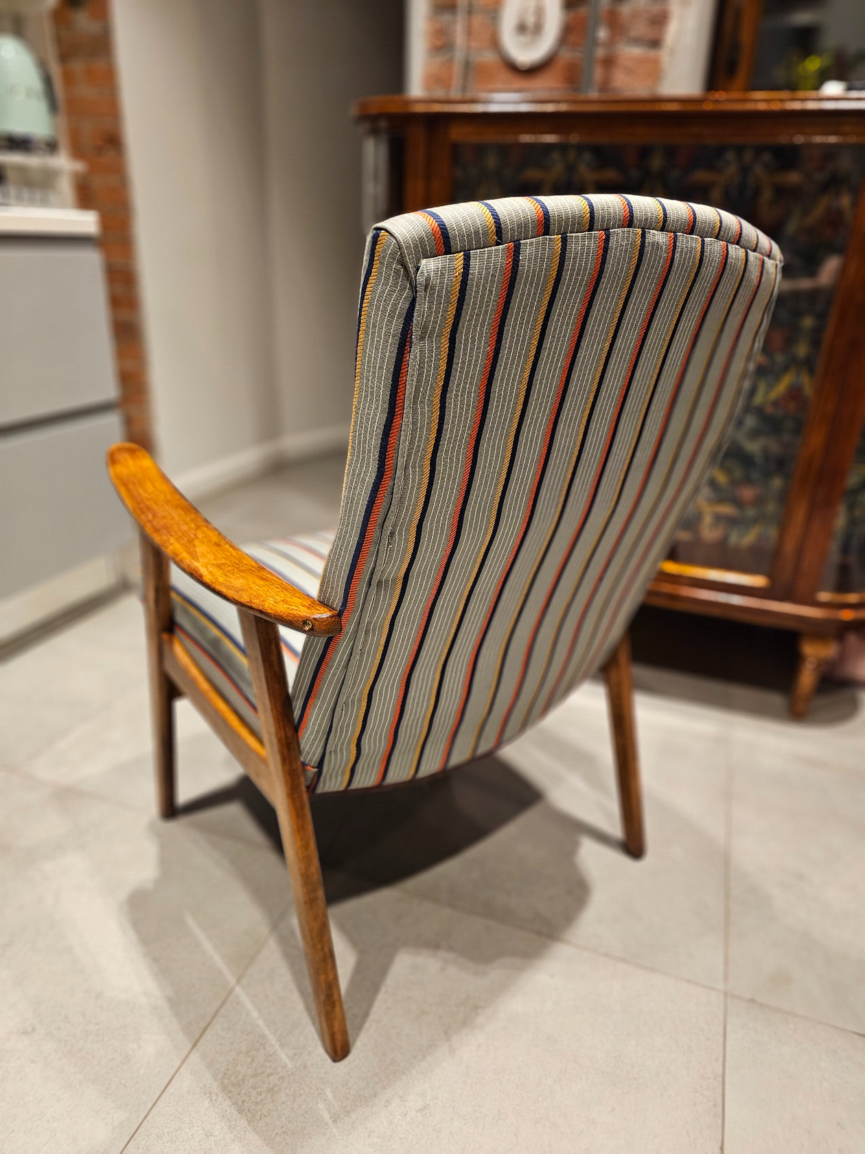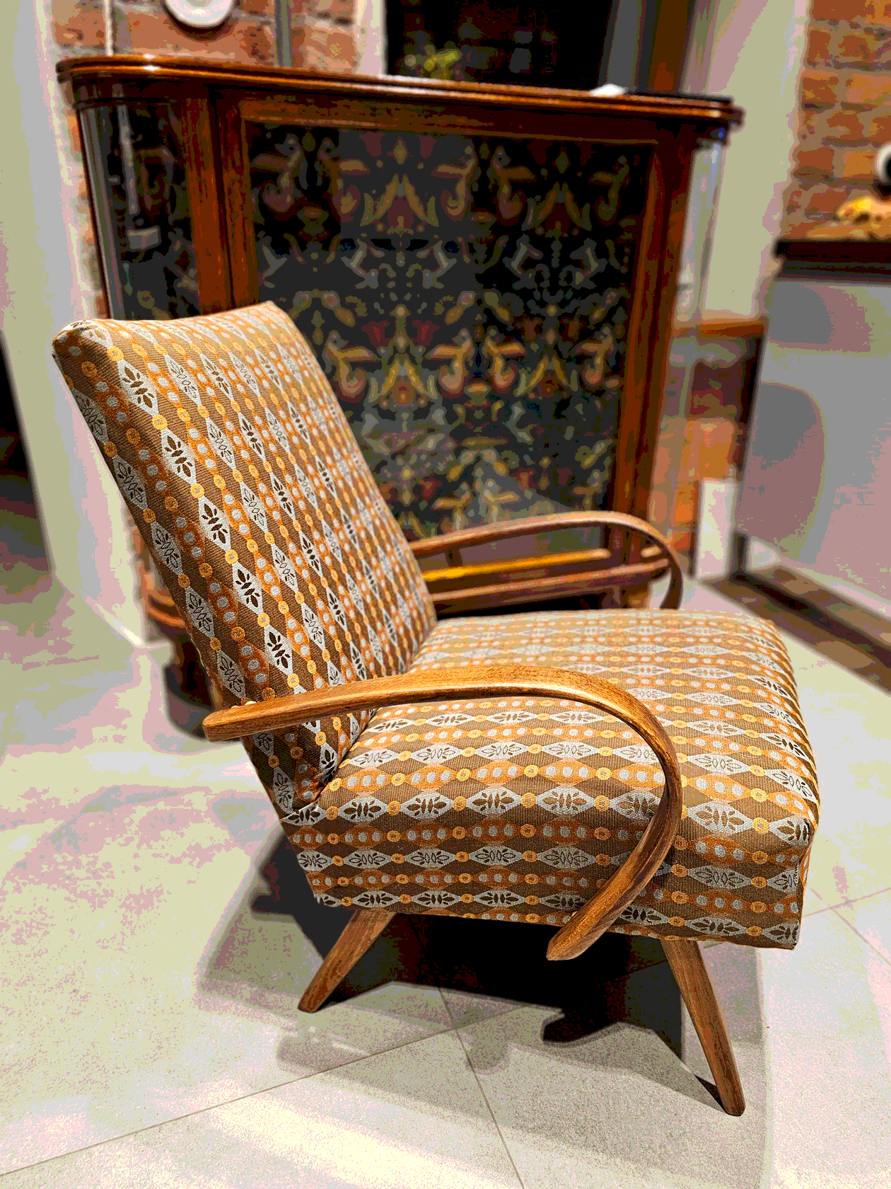 Винтажное рабочее кресло, 60-е. Польша, дизайнер Мечислав Пухала (Mieczysław Puchała) Кресло после бережной реставрации, ткань - США. 61 см глубина, 56 см ширина, 82 см высота, 47 см высота посадки. 39-46 см сиденье. 65 см высота подлокотников, 46 см высота спинки.