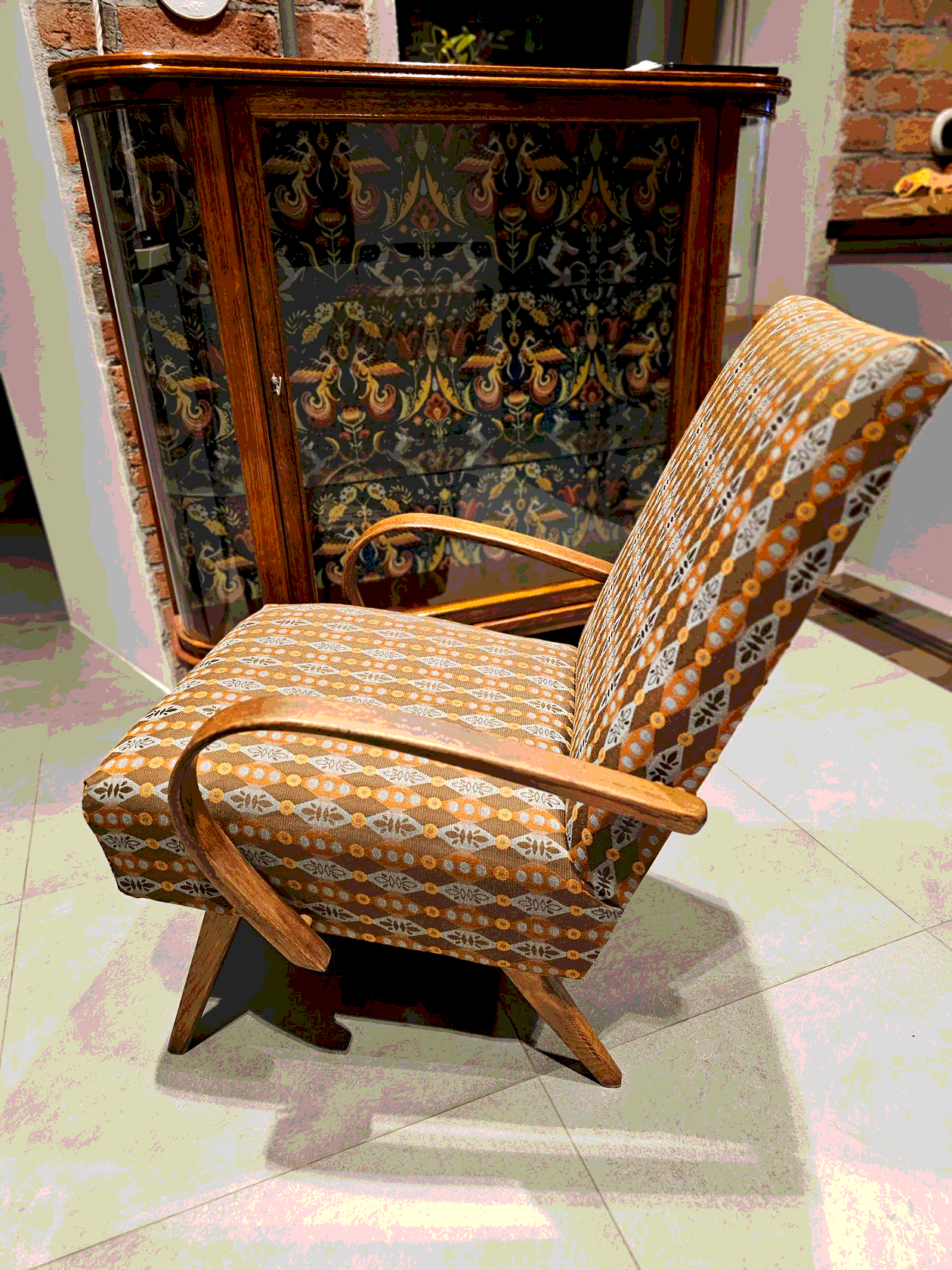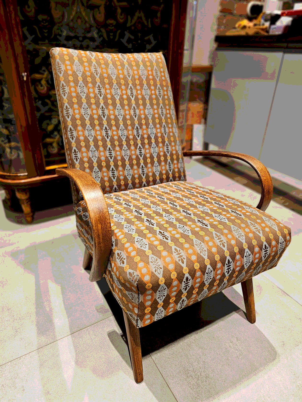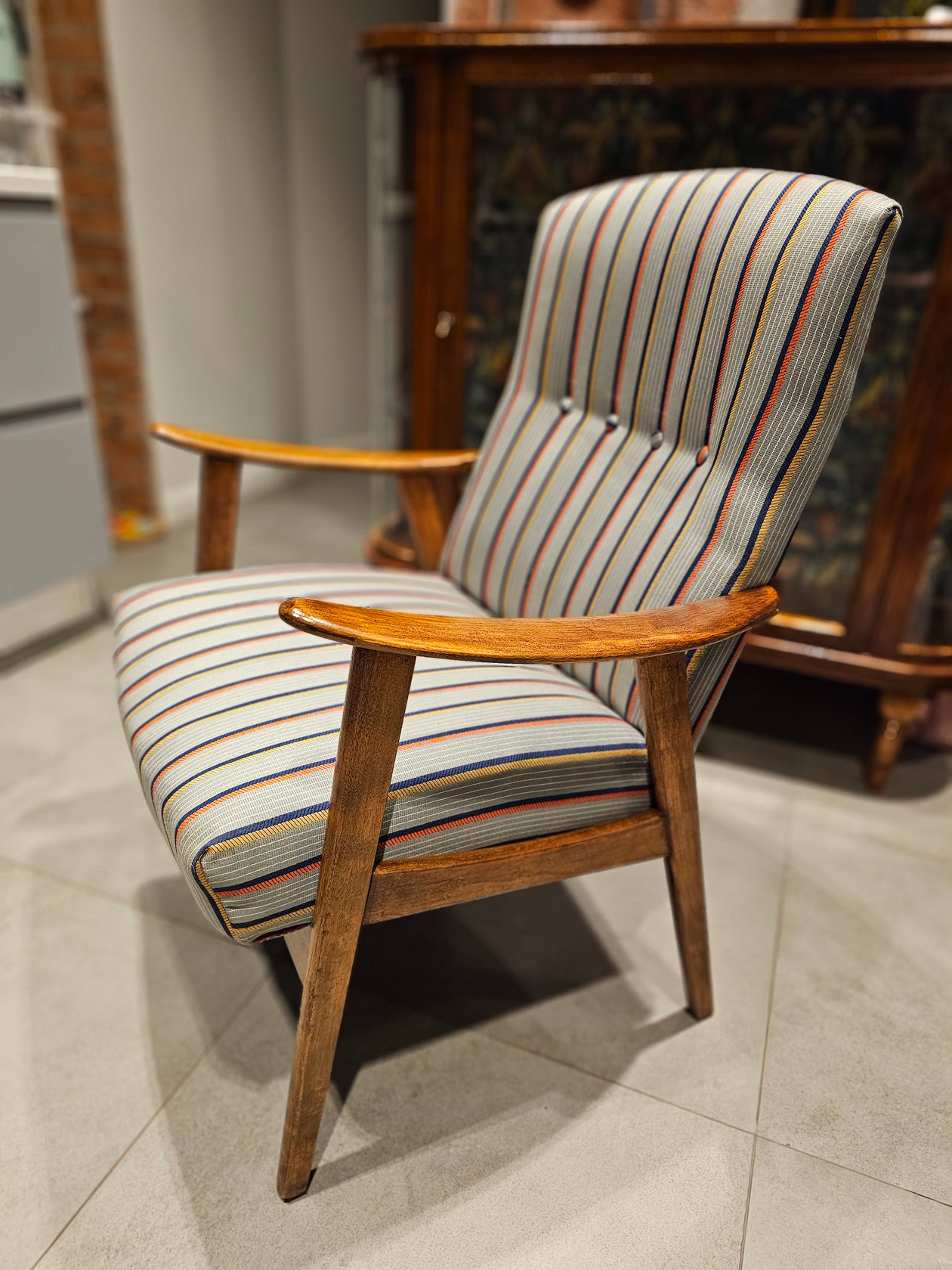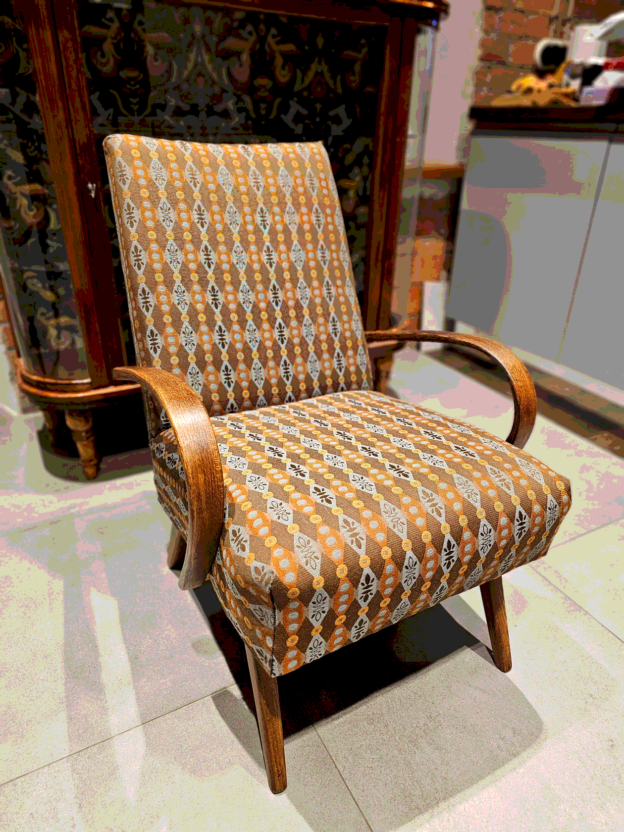 Винтажное рабочее кресло, 60-е. Польша, дизайнер Мечислав Пухала (Mieczysław Puchała) Кресло после бережной реставрации, ткань - США. 61 см глубина, 56 см ширина, 82 см высота, 47 см высота посадки. 39-46 см сиденье. 65 см высота подлокотников, 46 см высота спинки.