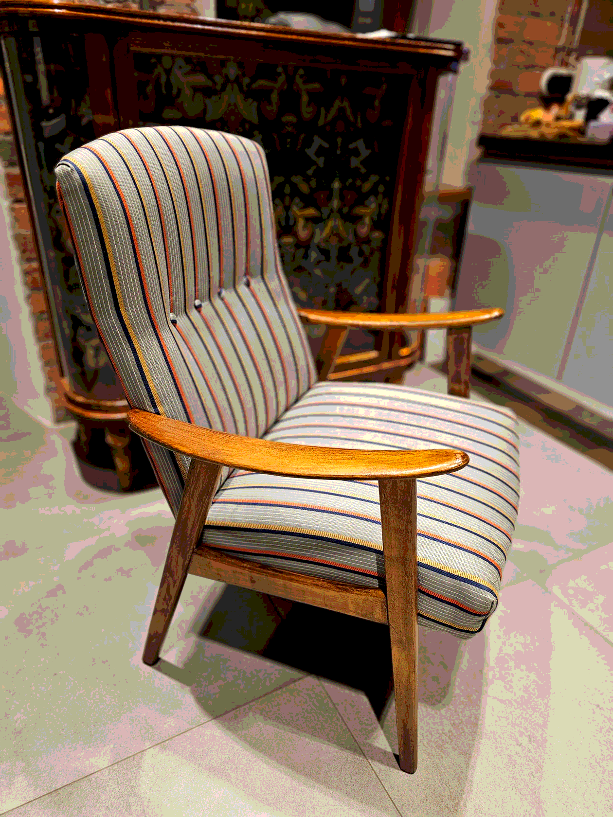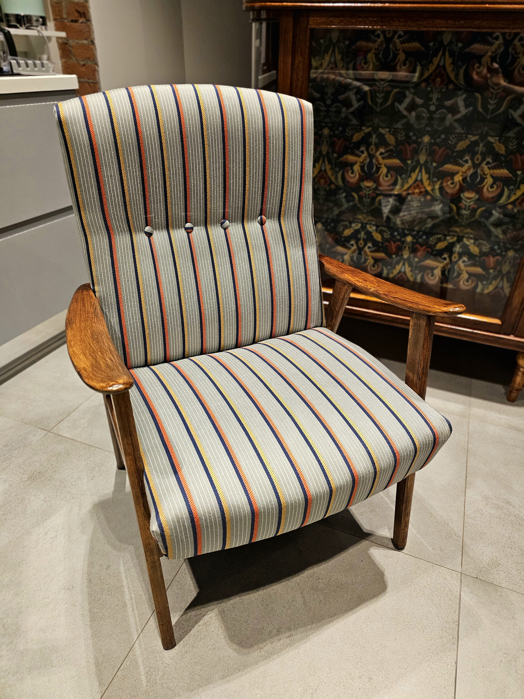Винтажное кресло в скандинавском стиле, Финляндия 1970 г., дизайнер Carl Gustaf Hiort af Ornäs. Полная реставрация, ткань США. В наличии 2 шт. Цена за одно кресло.