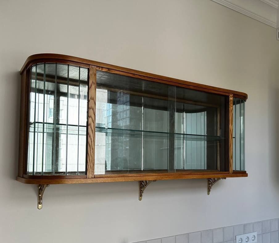 Редизайн, витрина до 1950 г. СССР. Верхняя часть советского буфета. Массив, шпон. Отреставрировано покрытие, оригинальные стекла, зеркала, добавлены крепления для подвеса. Добавит в современный интерьер оригинальности и будет ярким акцентом.