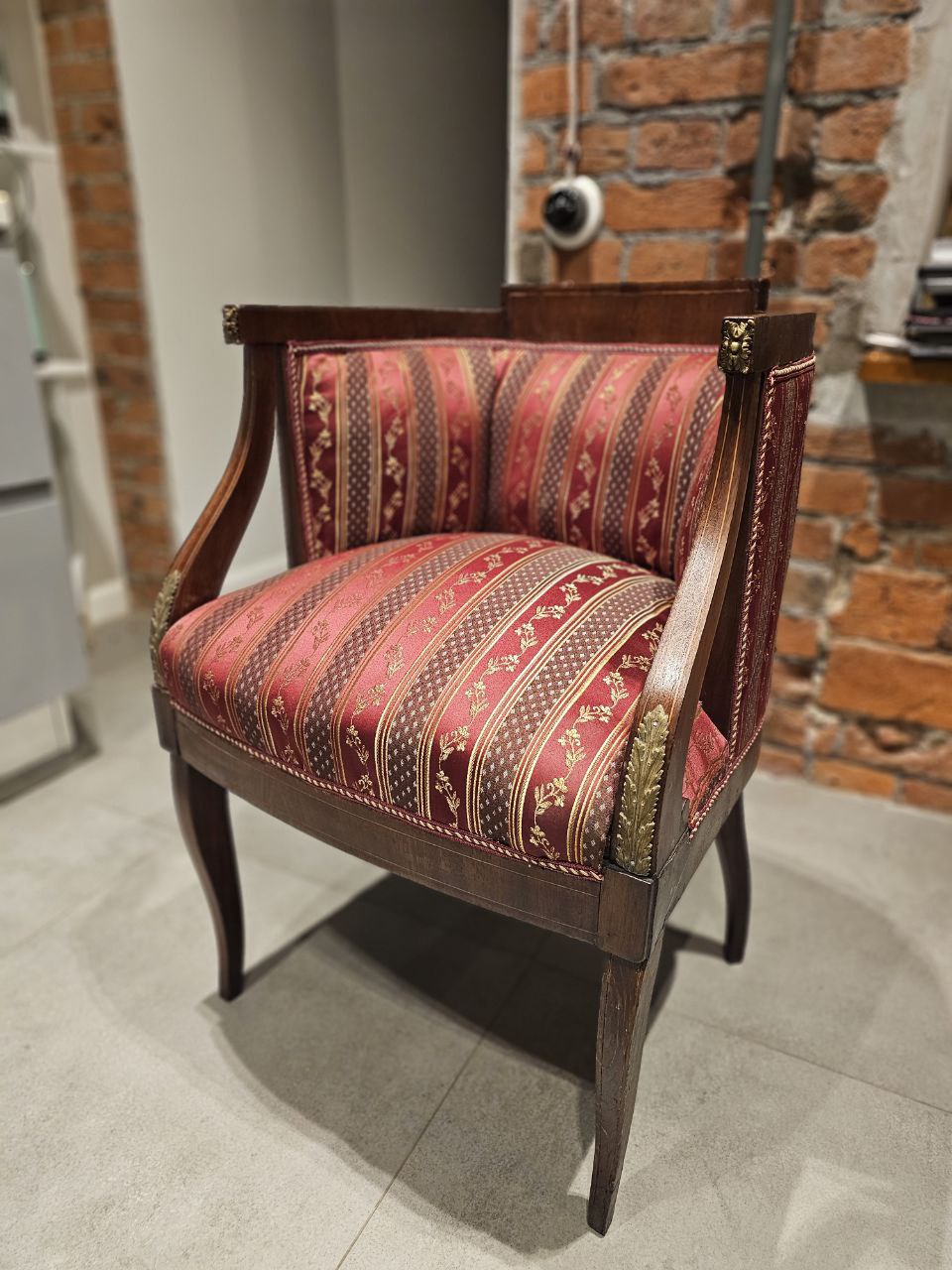 Угловое антикварное кресло, Франция 19 век. Доставлено из Франции, проведена реставрация в мастерской Варварка, европейская ткань. В наличии 2 кресла Цена указана за одно кресло